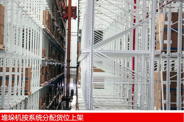 該中心由自動化立體庫系統、自動碼垛系統、傳送系統等組成。自動化立體庫高31.5米,共32796個托盤存儲位,配備18臺巷道堆垛機,出入庫能力為 8小時 10000套(吸油煙機+燃氣灶)。自動化立體庫旁邊的作業區共分為六層,其中一層為老板電器其他工廠貨物入庫及出庫區;二層為該生產基地貨物入庫及整托盤出庫區;三層為拆零作業區(仍以托盤為單位)及拆零貨物出庫;四、五、六層為作業預留區(四層存放部分零散貨物)。