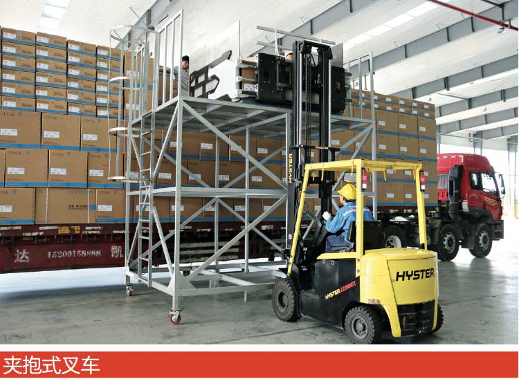 該智能倉儲物流中心采用了多種******的物流設備,如自動碼垛機器人等。在裝車環節還引進了夾抱式叉車以及皮帶伸縮機等多種裝車設備。其中夾抱式叉車大幅提高了大件貨物的裝車效率,由之前的9人/小時縮短為4人/小時,并大大降低了作業人員的勞動強度。
